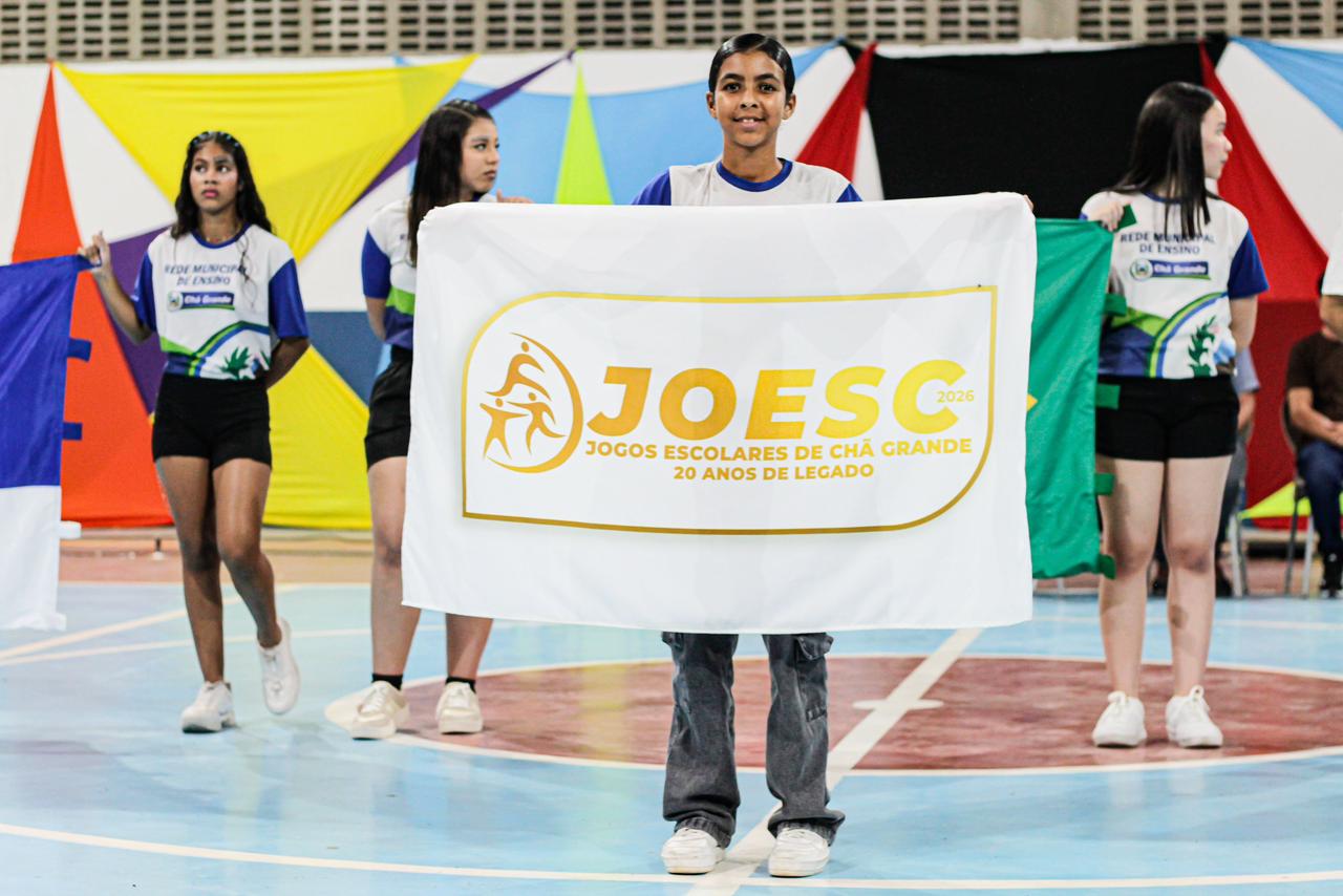 O desfile da bandeira do Joesc, carregada por uma aluna da Escola Municipal XV de Março, marcou o início da cerimônia. Em seguida, as bandeiras do Brasil, Pernambuco e Chã Grande entraram na quadra, antecedendo os estudantes participantes do JOESC. A ordem contou com as escolas XV de Março, Araquém, Educandário Batista, Instituto ENA, Referencial, Sal e Luz e João Faustino de Queiroz. Apesar de constar na ordem de entrada e ter jogos divulgados na tabela da competição, a Escola de Referência em Ensino Médio João Batista de Vasconcelos não compareceu à cerimônia.