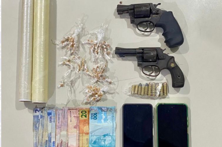 Ao todo, foram apreendidas 139 pedras de crack, dois revólveres — um calibre 32 e outro calibre 38 com numeração suprimida —, munições de diferentes calibres, dinheiro em espécie e dois aparelhos celulares. Os dois suspeitos foram autuados em flagrante delito.