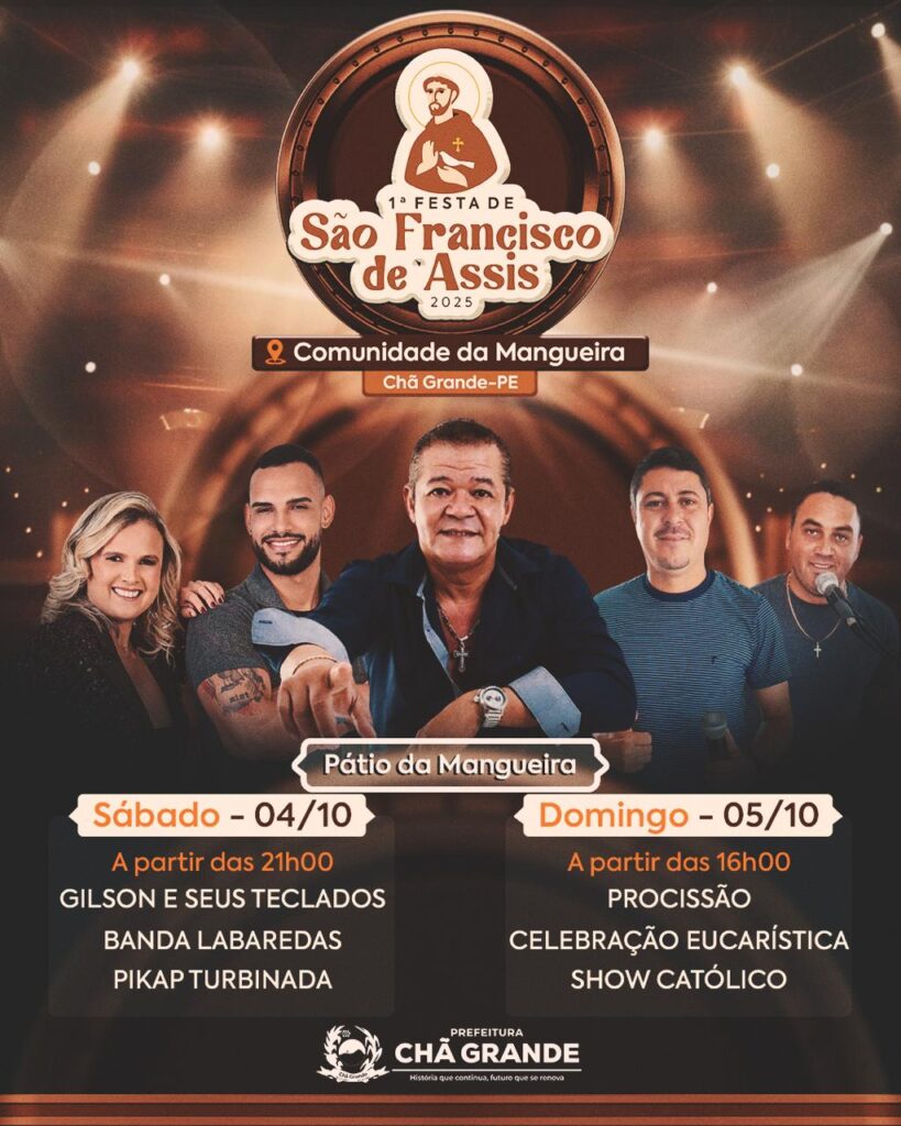 A comunidade da Mangueira, na zona rural de Chã Grande, esteve em festa na noite deste sábado (4) com a abertura da primeira edição da Festa de São Francisco de Assis. O evento, que passa a integrar o calendário festivo do município, é promovido pela Prefeitura de Chã Grande, por meio da Secretaria de Turismo e Cultura.