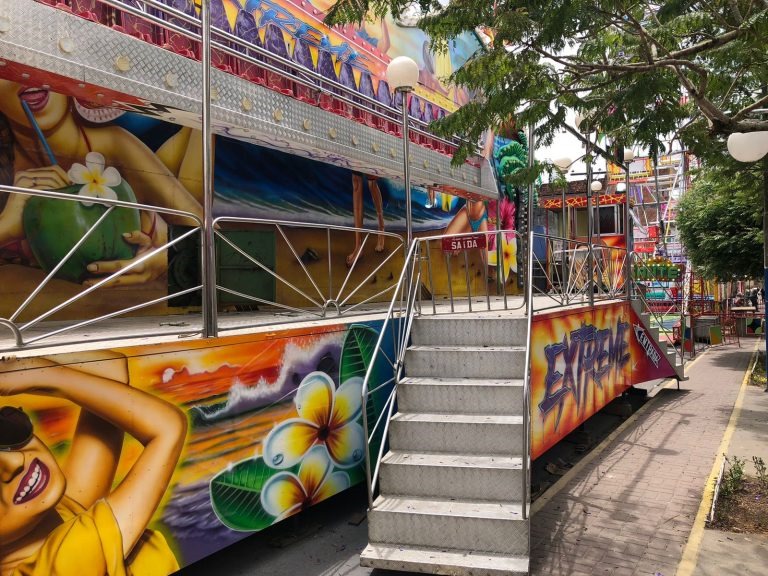 Os parques de diversões estão montados na Avenida São José, no centro de Chã Grande.