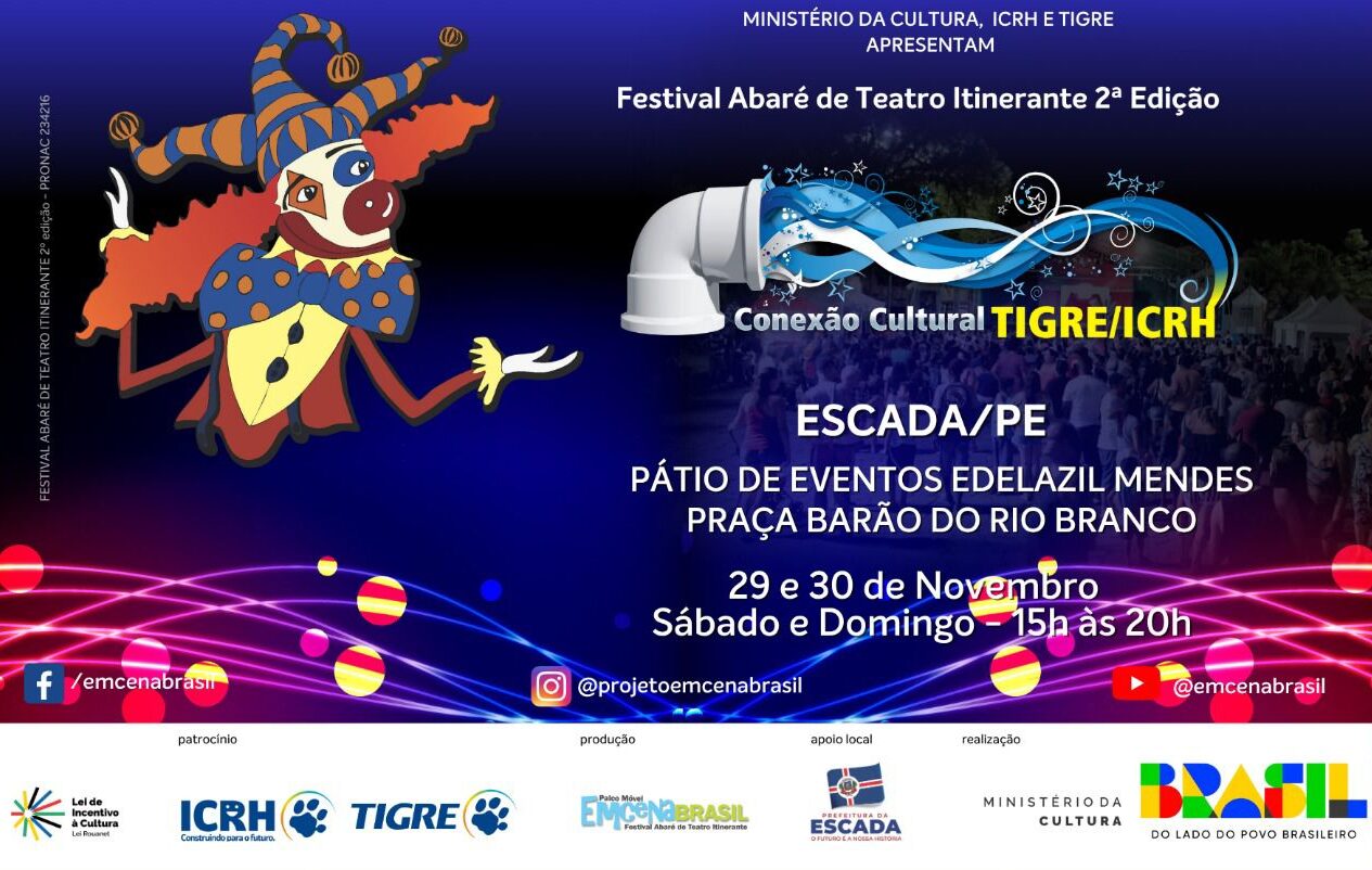 A cidade de Escada, na Mata Sul de Pernambuco, recebe neste fim de semana o Palco Móvel Conexão Cultural Tigre – Festival Abaré de Teatro, iniciativa itinerante que transforma praças públicas em verdadeiras arenas culturais. O projeto, realizado pelo Emcena Brasil Produções em parceria com a Tigre, acontece nos dias 29 e 30 de novembro, das 15h às 20h, no Pátio de Eventos Edelazil Mendes, na Praça Barão do Rio Branco, com entrada totalmente gratuita.