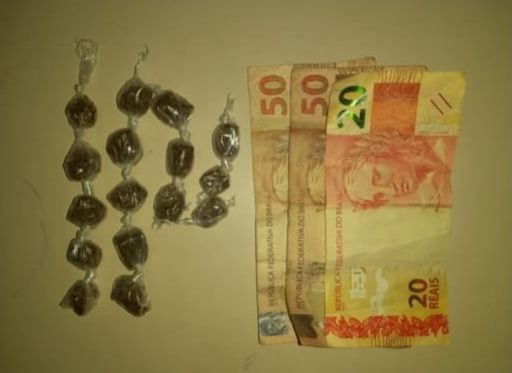 Durante o patrulhamento, os policiais identificaram um adolescente em atitude suspeita. Na abordagem, foram encontradas seis porções do material ilícito com o jovem e outras dez próximas a um muro, totalizando 16 invólucros. Também foi apreendida a quantia de R$ 120,00 em espécie.