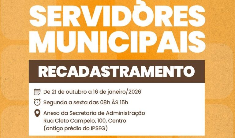 O objetivo da medida é atualizar e organizar as informações funcionais dos servidores, promovendo mais transparência e eficiência na gestão pública. O atendimento será realizado de segunda a sexta-feira, das 8h às 15h, exceto em feriados, no anexo da Secretaria de Administração, localizado na Rua João Pessoa, nº 100, Centro, no antigo prédio do IPSEG.