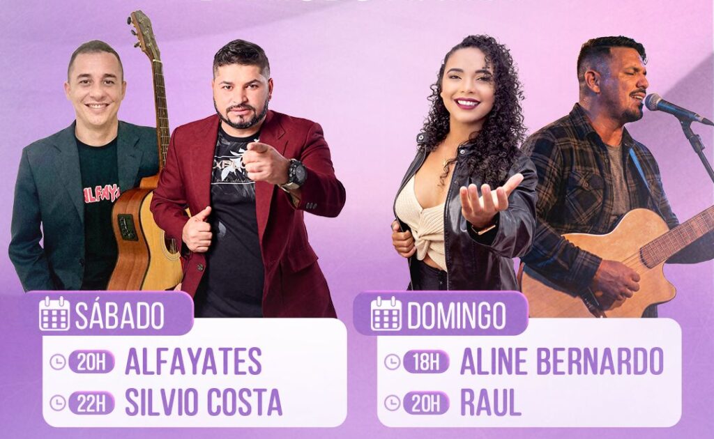 No sábado (17), a programação começa às 20h. A primeira atração a se apresentar será Os Alfayates. Em seguida, a partir das 22h, o público vai curtir ainda o show de Silvio Costa.